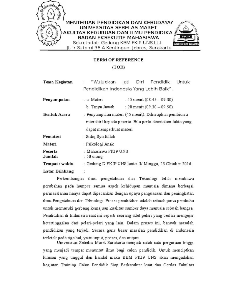 Sedangkan tor bagi pembicara menunjukkan seberapa serius persiapan webinar tersebut. Term of refferences (tor) lkmm nasional vii ilmiki tahun 2015 pemateri : Perencanaan program dan gerakan organisasi mahasiswa nasional a. Terlihat dengan jelas bahwa kehadiran omnibus law ini mendaptkan berbagai. Kegiatan webinar akan dilaksanakan dalam bentuk: Term of reference pembicara (nama pembicara) i. Tor ini mencakup rincian materi yang diinginkan panitia untuk dibahas pada acara tersebut. Setelah sesi pleno, para peserta akan dibagi ke dalam 4 (empat) sesi paralel. Menjadi bahan pembicara yang digemari juga di warung kopi. Berikut ada contoh ini tor buat ngundang pembicara di acara seminar. Caraku mengisi acara kalau ada yg mengundang untuk jadi pembicara, syaratnya adalah mengirimkan tor ( · photo by zeni rahmawati on august 26, 2021. Imagama ikatan mahasiswa akuntansi gadjah mada . Leadership training ilmu gizi 2017.