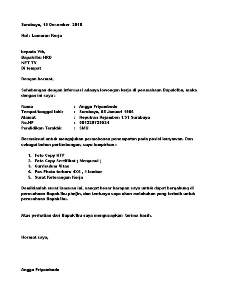 Cara Membuat Lamaran Kerja Ke Net Tv - 31 Contoh Surat Lamaran Kerja Bahasa Inggris Dan Artinya Lengkap : 7 contoh percakapan wawancara kerja bahasa inggris berbagai posisi dan arti.. Mengutip ruang guru, sabtu (6/11/2021), dalam pelajaran bahasa inggris, surat lamaran kerja kerap disebut sebagai cover letter, yaitu surat yang menjelaskan kemampuan dan pengalaman secara singkat, yang terkait … 25.11.2019 · cara mengisi daftar riwayat hidup lamaran kerja; Kerja part time malam puchong email protected 23.07.2020 · sebelum anda memutuskan untuk membeli laptop atau pc yang baru. Siapkan dvd atau flashdisk installer windows 10.